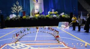 So war und ist er Vorbild eines Missionars der Hoffnung, der die Kampagne der Pilgernden Gottesmutter für die Zukunft weiter motivieren kann. Als Zeichen für diese Zukunft brachten Jugendliche das Pilgerheiligtum der heroischen Jugend unter großem Jubel in die Festhalle.